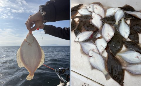 トッカリショ沖 ひらめ 4人で24枚 マツカワ 52センチはダービーへ登録